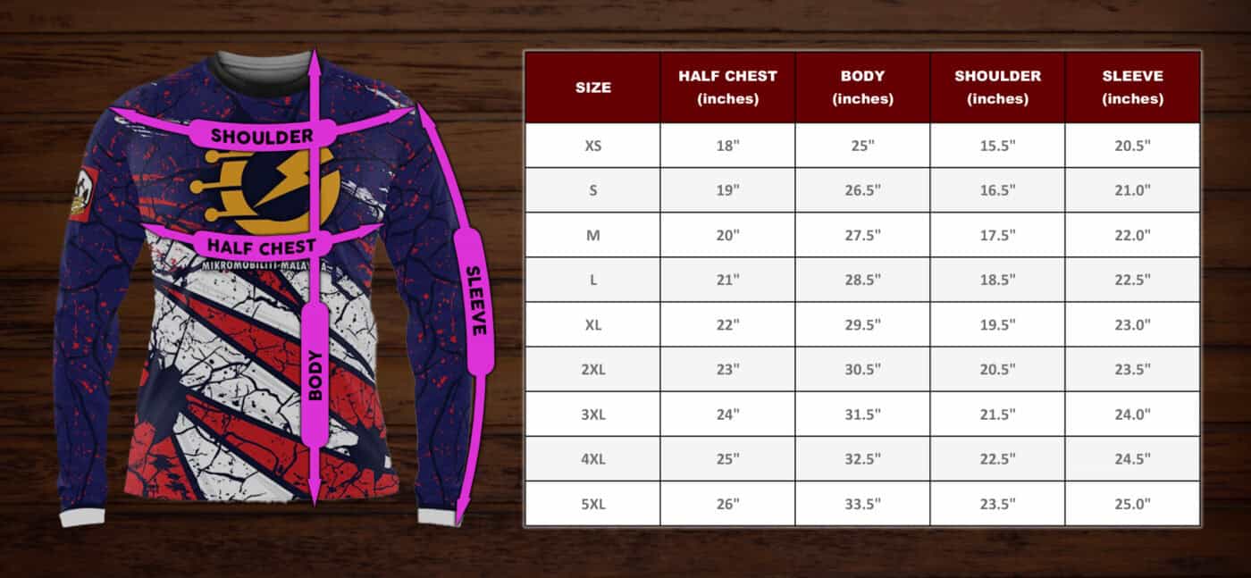 | Size | XS, S, M, L, XL, 2XL, 3XL, 4XL, 5XL |
